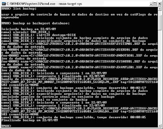 2) Verificação de Backup (RMAN> list backup;) e backup do banco (RMAN> backup as backupset database;)