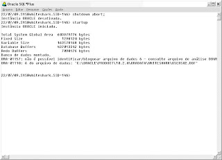 Dei um “shutdown abort” no banco e removi manualmente pelo Sistema Operacional o datafile dessa tablespace que acabei de criar e que ainda não estava no meu backupset. Quando tento subir o banco novamente, dá erro pois o dbwr não encontra o arquivo.